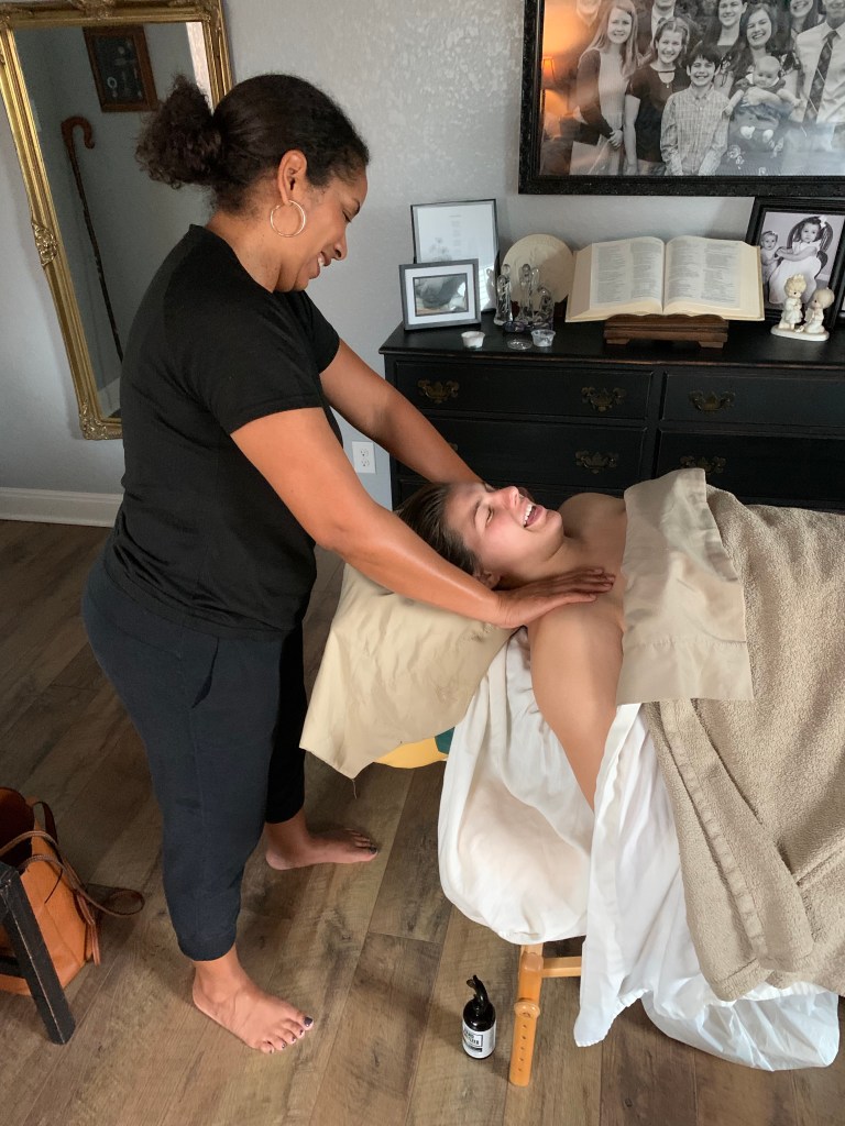 In addition to the physical body work, we also worked on breathing. Taking full, complete breaths that fill your lungs, and then expelling those complete breaths, takes practice if you want to increase your lung capacity! Calming your parasympathetic nervous system starts with breath work, so we practiced, and practiced. I also encouraged chiropractic visits and gifted a couple prenatal massages in the last trimester with my amazing massage therapist and fellow doula, Leti. She also hit the jackpot and my fellow doula and bodyworker, Alejandra needed a volunteer for some craniosacral work, so Emily was able to benefit from her gifted hands. Oh, how I wish doulas, chiropractors, lactation consultants, bodyworkers and massage therapists were standard gifts at baby showers! But, again, that is another post for another day…..back to our VBAC story…