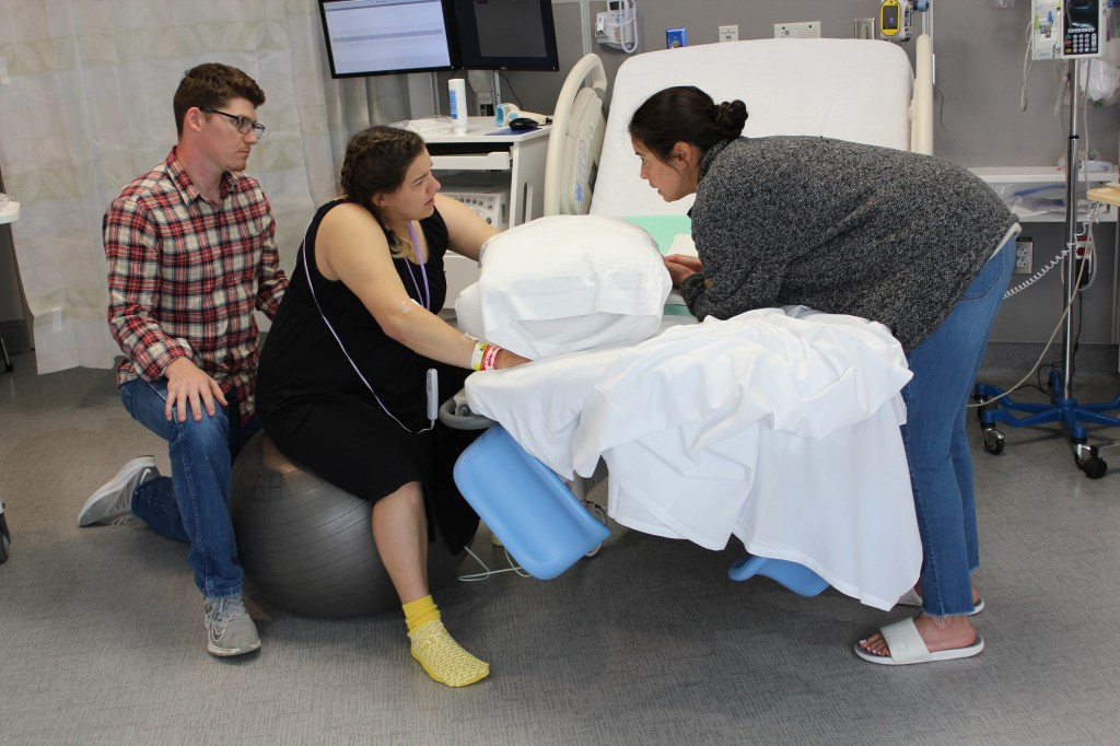 Another long day of doing everything we could to get labor going and get baby to descend into the pelvis. Swaying, shaking, and squeezing. Moving, massaging, and meditating! One thing after another to keep labor going with rest periods in between. The three of us, Yesenia, Hayden and I took turns and I was never so grateful for so many helping hands! We even did the Walcher’s manuever, which I rarely do because it is very uncomfortable and awkward. The IV placement had been rough, and I had to walk away to keep from losing my cool when it took the nurse three tries to get the second IV in! I asked if the second IV was truly necessary. Emily persevered and agreed it was better to be safe than sorry, they would need the second IV if a C section was called for.